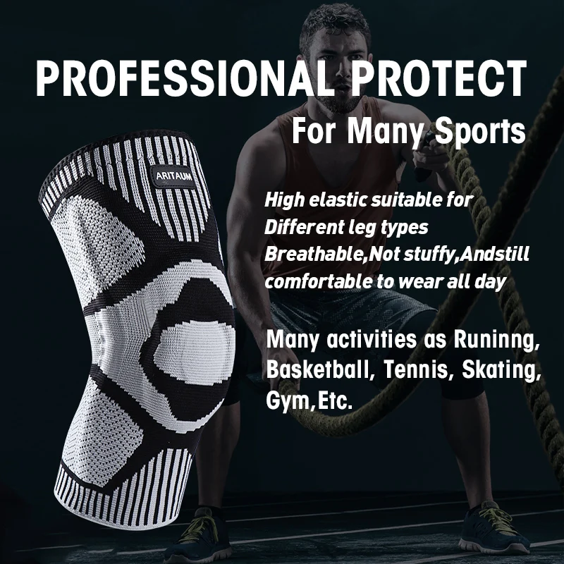 1 Pack of Professional Sports Knee Pads, Knee Pads, Meniscus Silicone Spring Support, Running Fitness, Basketball, Tennis, Badminton, Volleyball Knee Pads