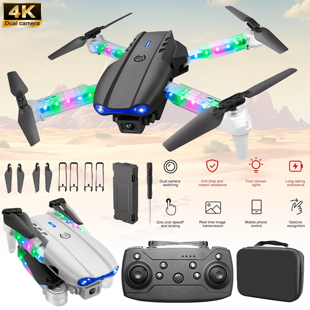 4K HD Dual Camera Mini Drone WiFi FPV E99 MAX Selfie RC UAV 6-Axis Gyro One-Key Auto Return Foldable Drone Adjustable RC Plane
