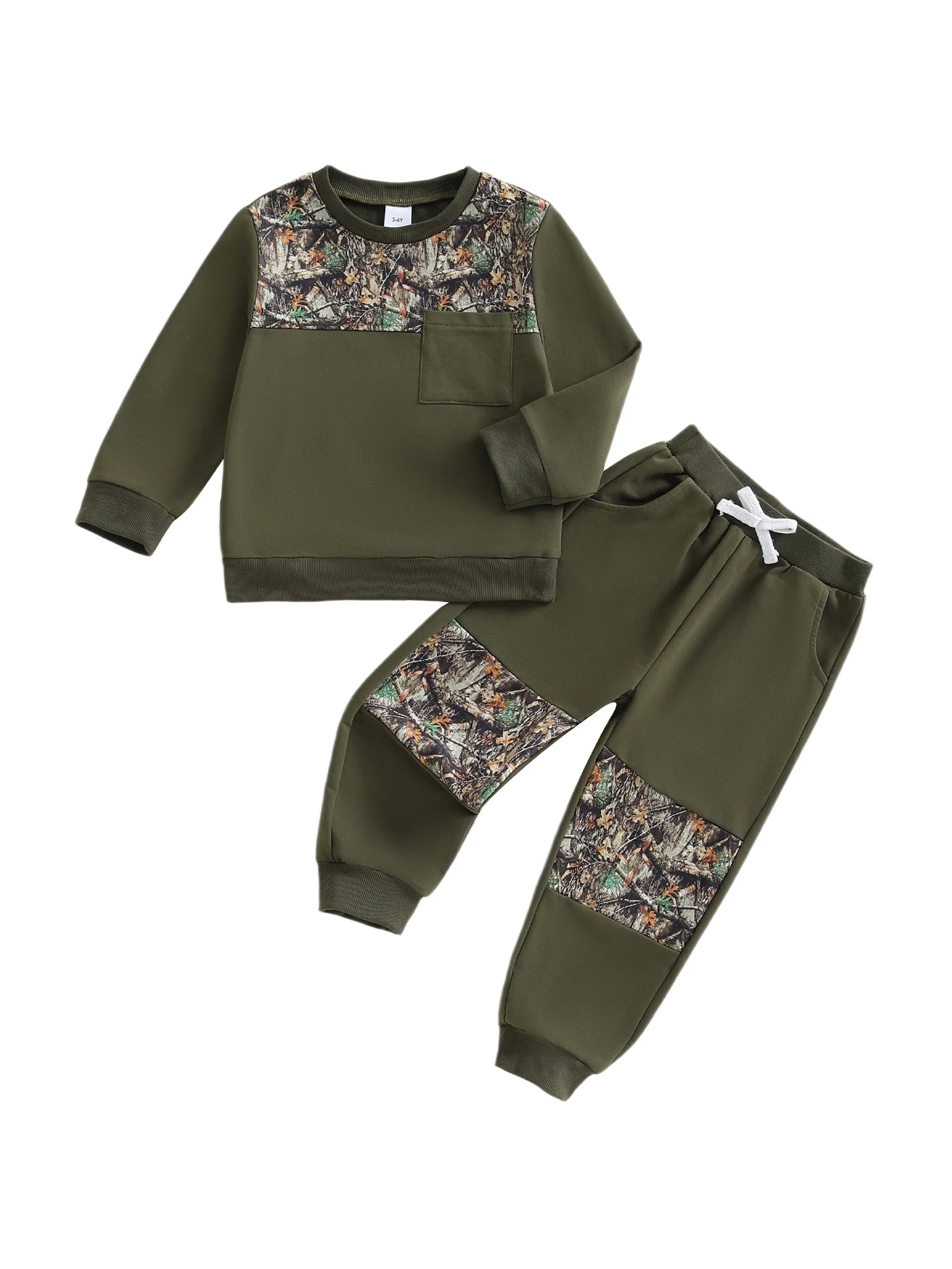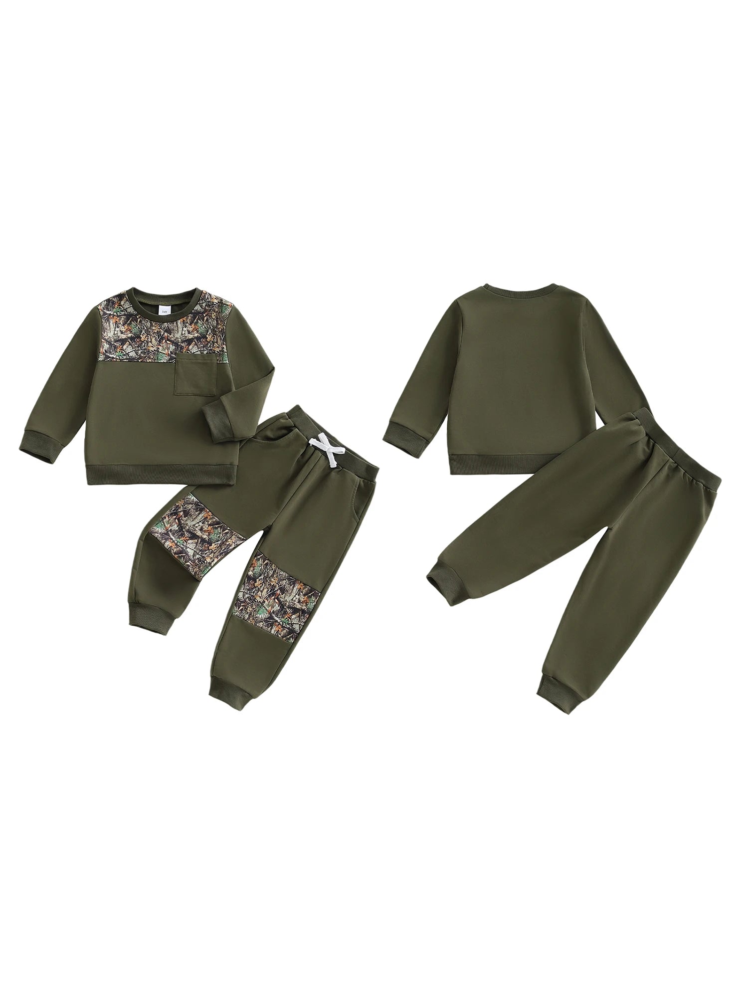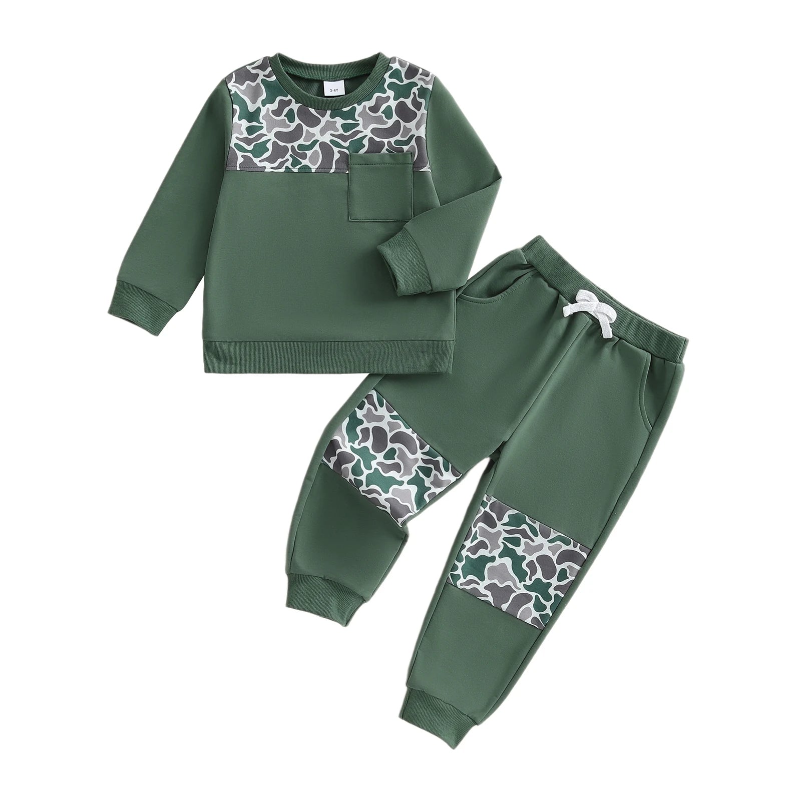 Kids Boys 2-piece Outfit, Camouflage Long Sleeve Sweatshirt with Elastic Waist Sweatpants Fall Outfit