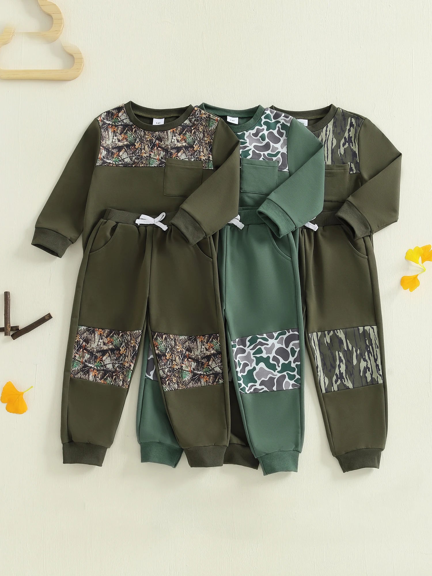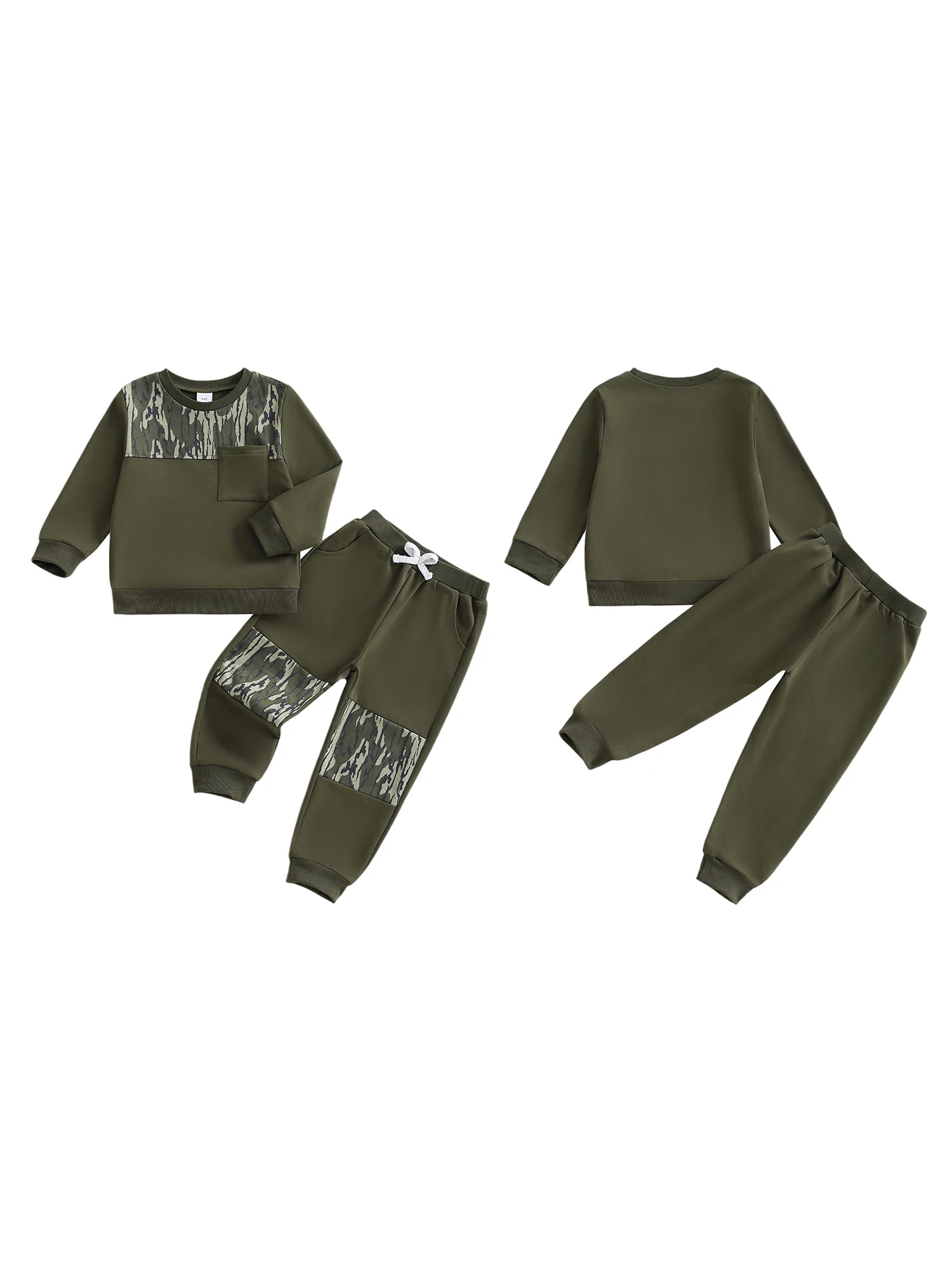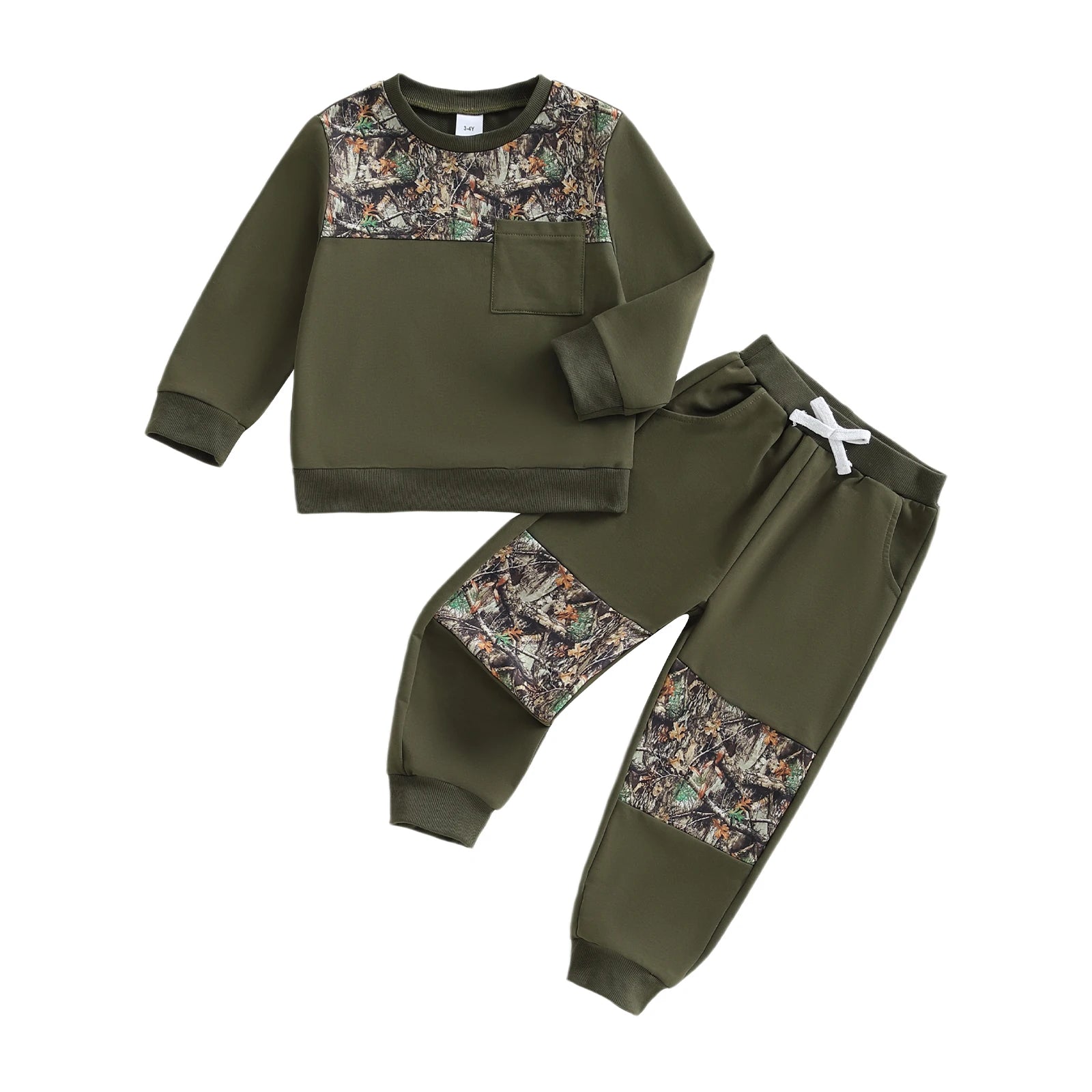 Kids Boys 2-piece Outfit, Camouflage Long Sleeve Sweatshirt with Elastic Waist Sweatpants Fall Outfit