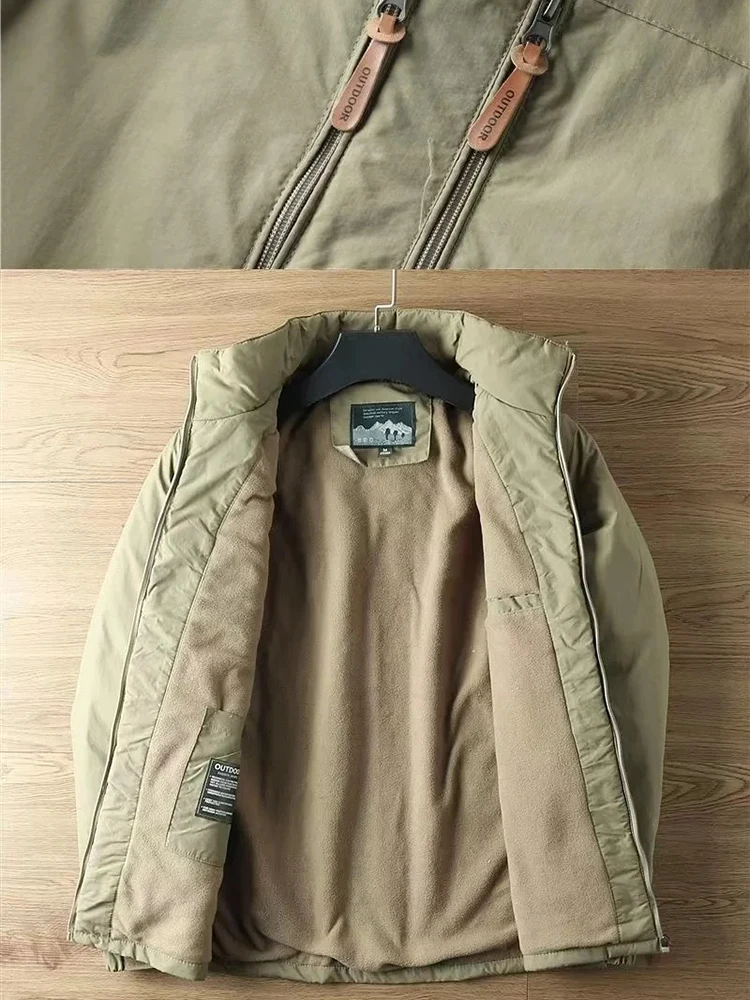 Casual Warm Tactical Large Size Jacket Autumn And Winter Padded And Thickened Outdoor Punching Jacket Solid Colour Men's