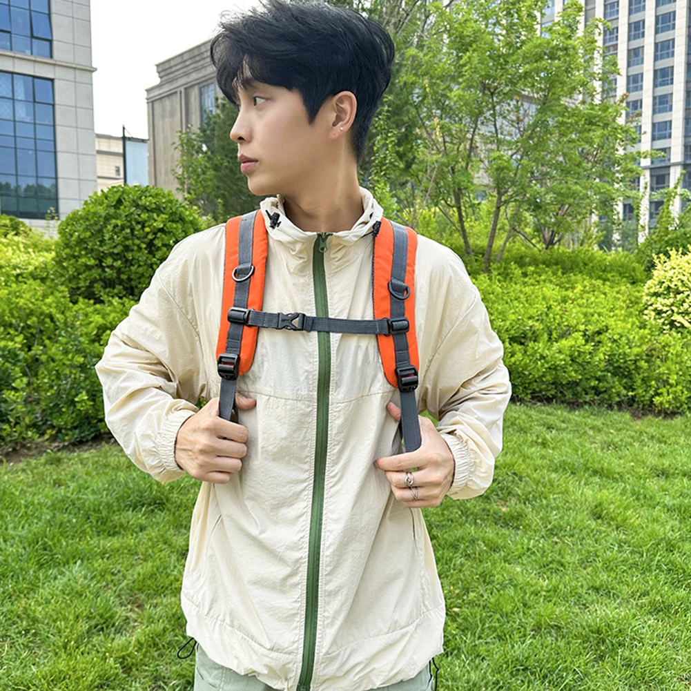 1. and Water-Resistant Fabric: Crafted from tear-resistant and water-repellent material, this hiking backpack effectively shields your belongings from rain and splashes. Its construction ensures your items stay dry and protected during any adventure. Specification: Origin: Mainland China Material: Nylon Colors: Red, Dark Blue, Orange, Black, Blue, Dark Green Size: 47cm (18.5in) x 31cm (12.2in) x 21cm (8.27in)