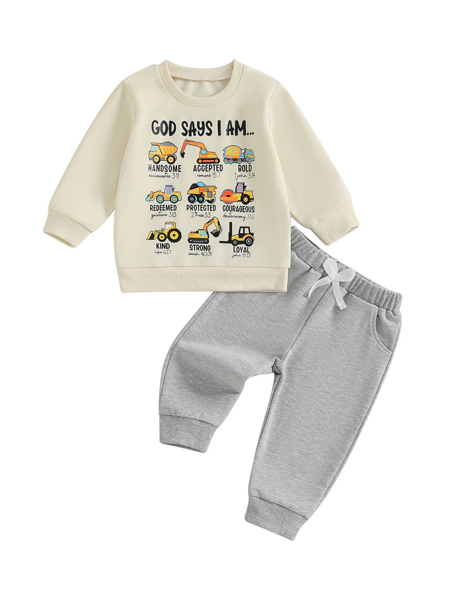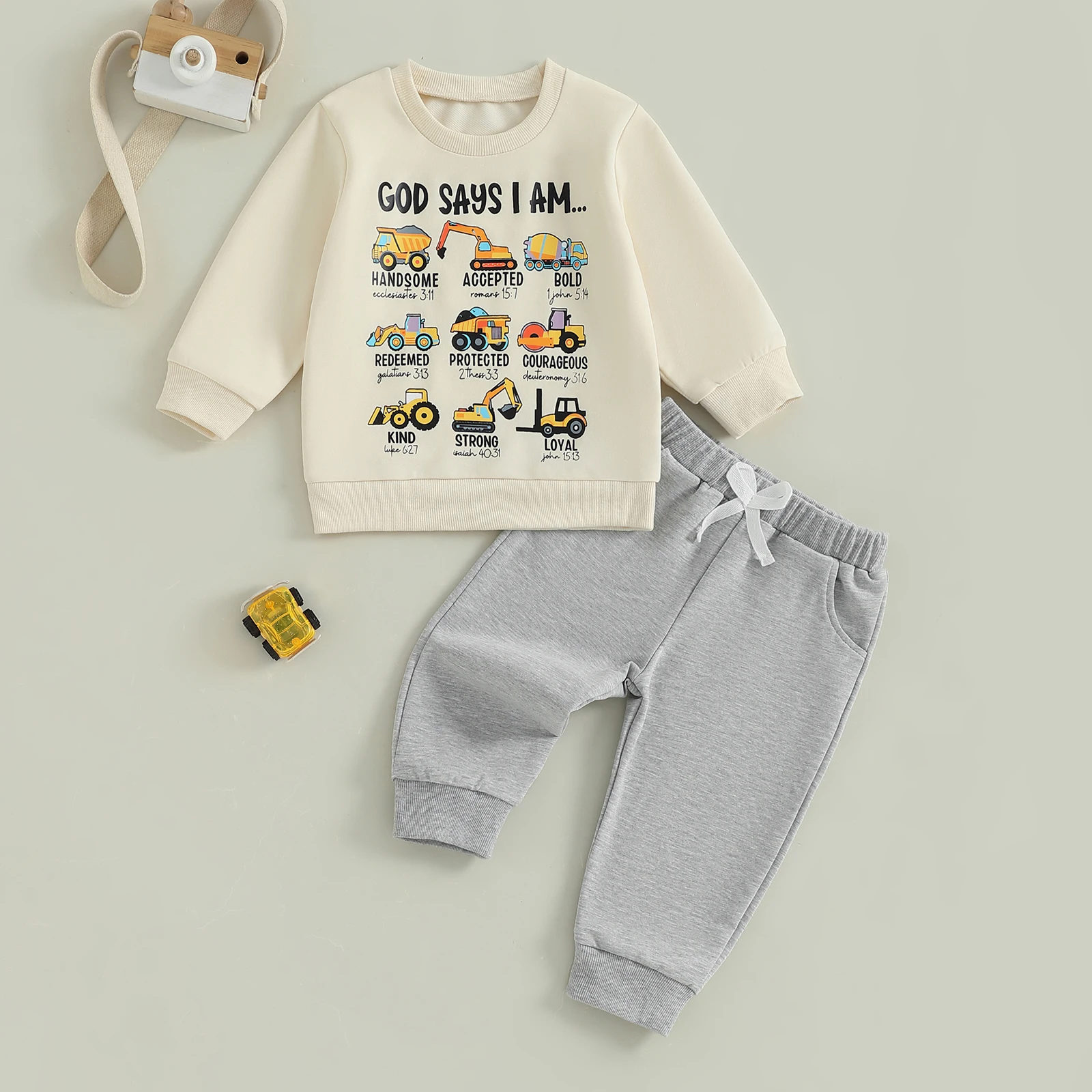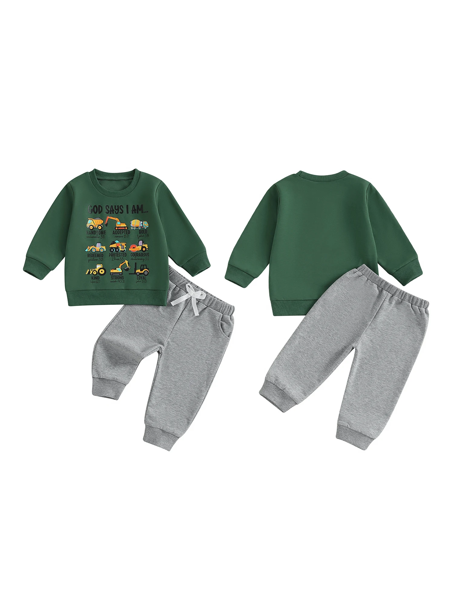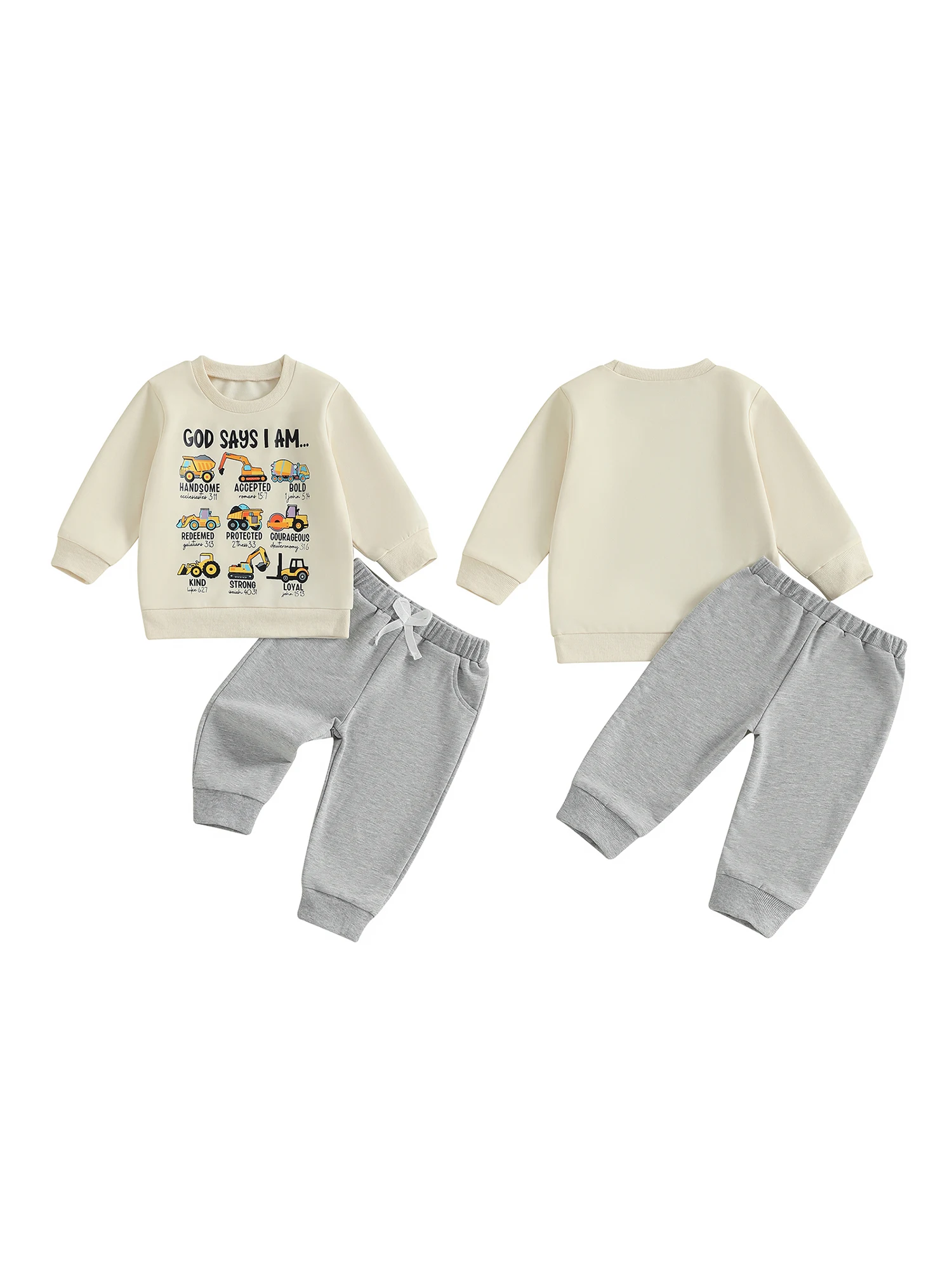 Toddler Baby Boy Fall Outfit Tool Cars Print Crew Neck Long Sleeve Sweatshirt and Pants 2 Pcs Set