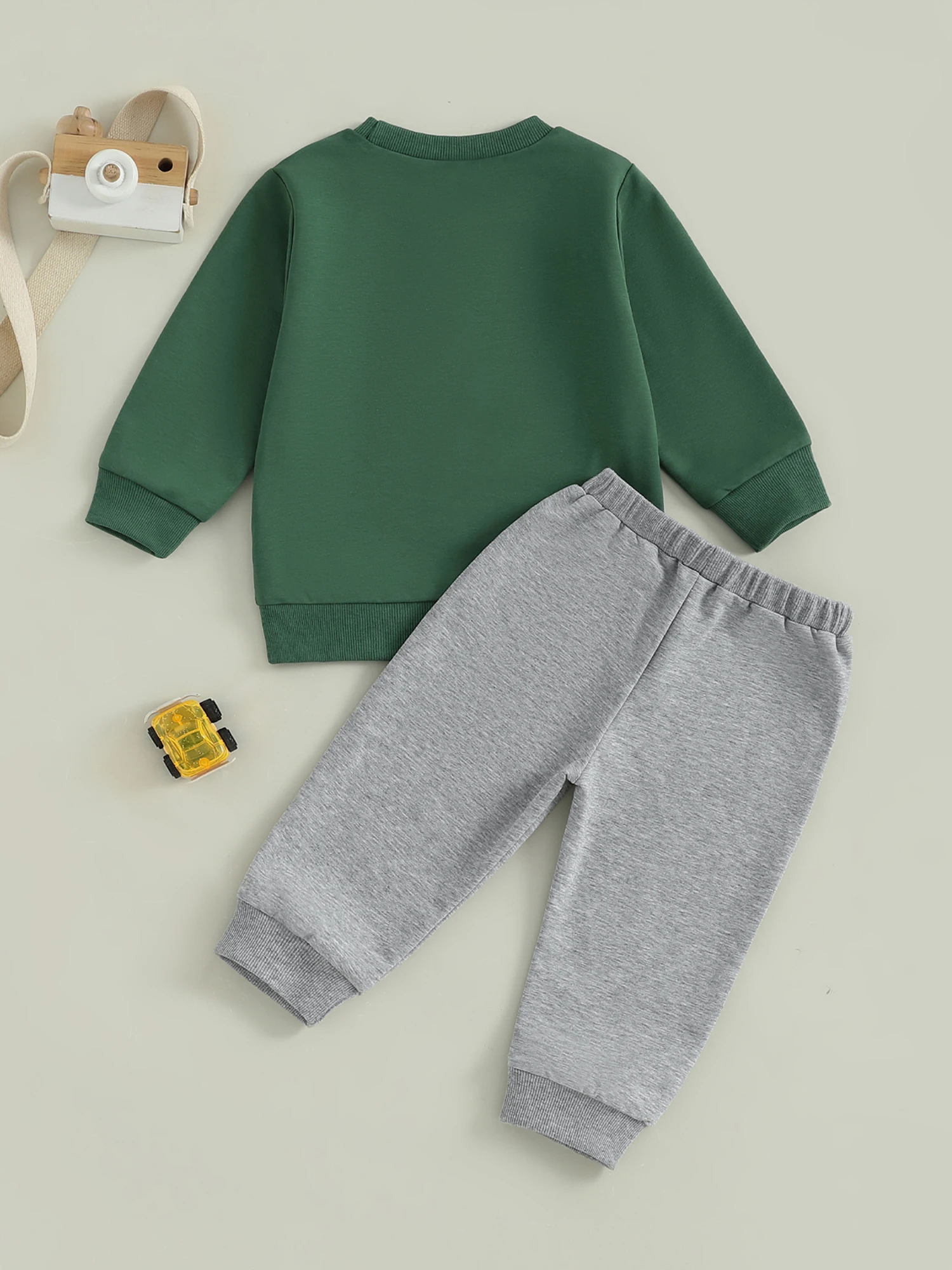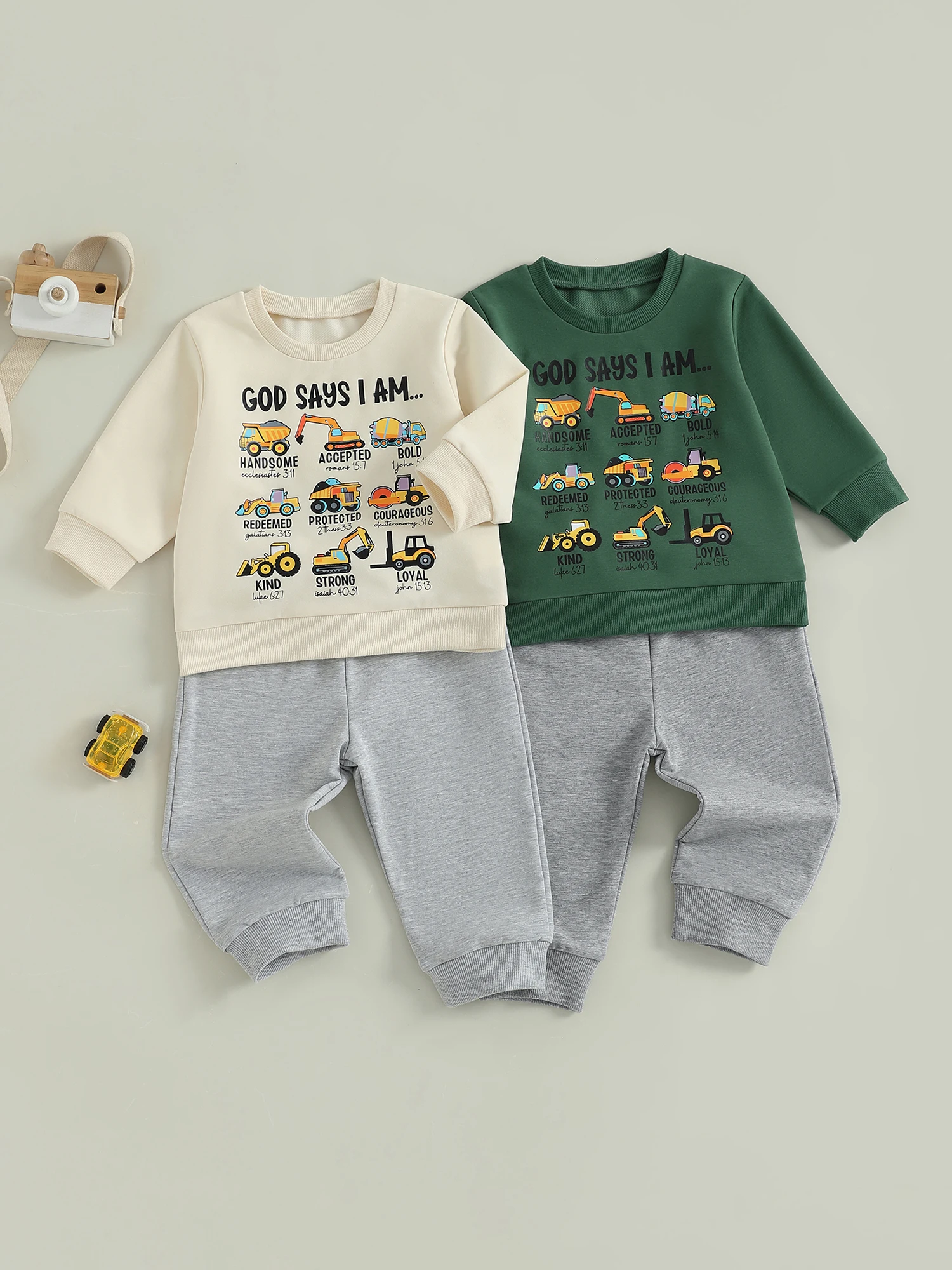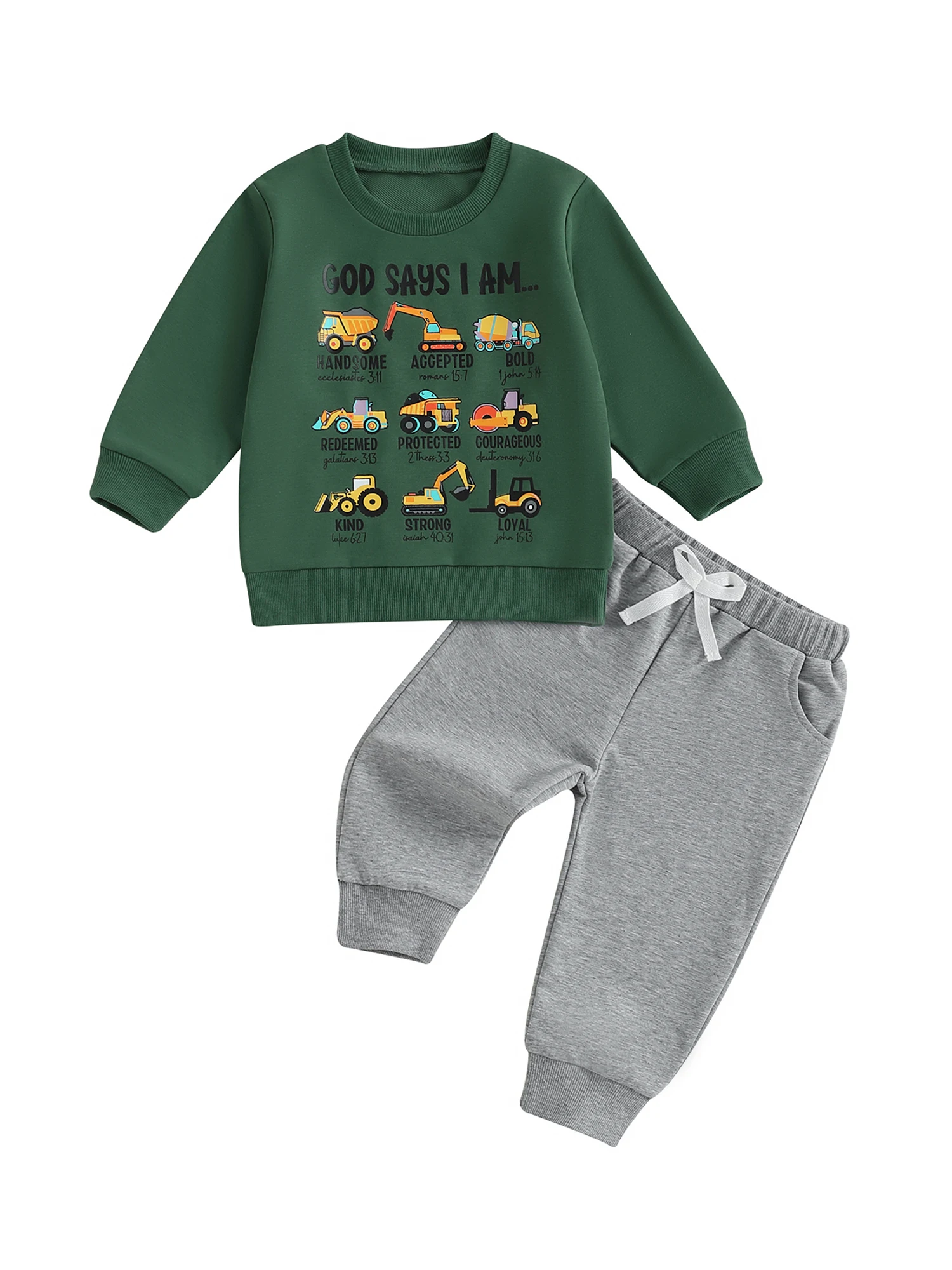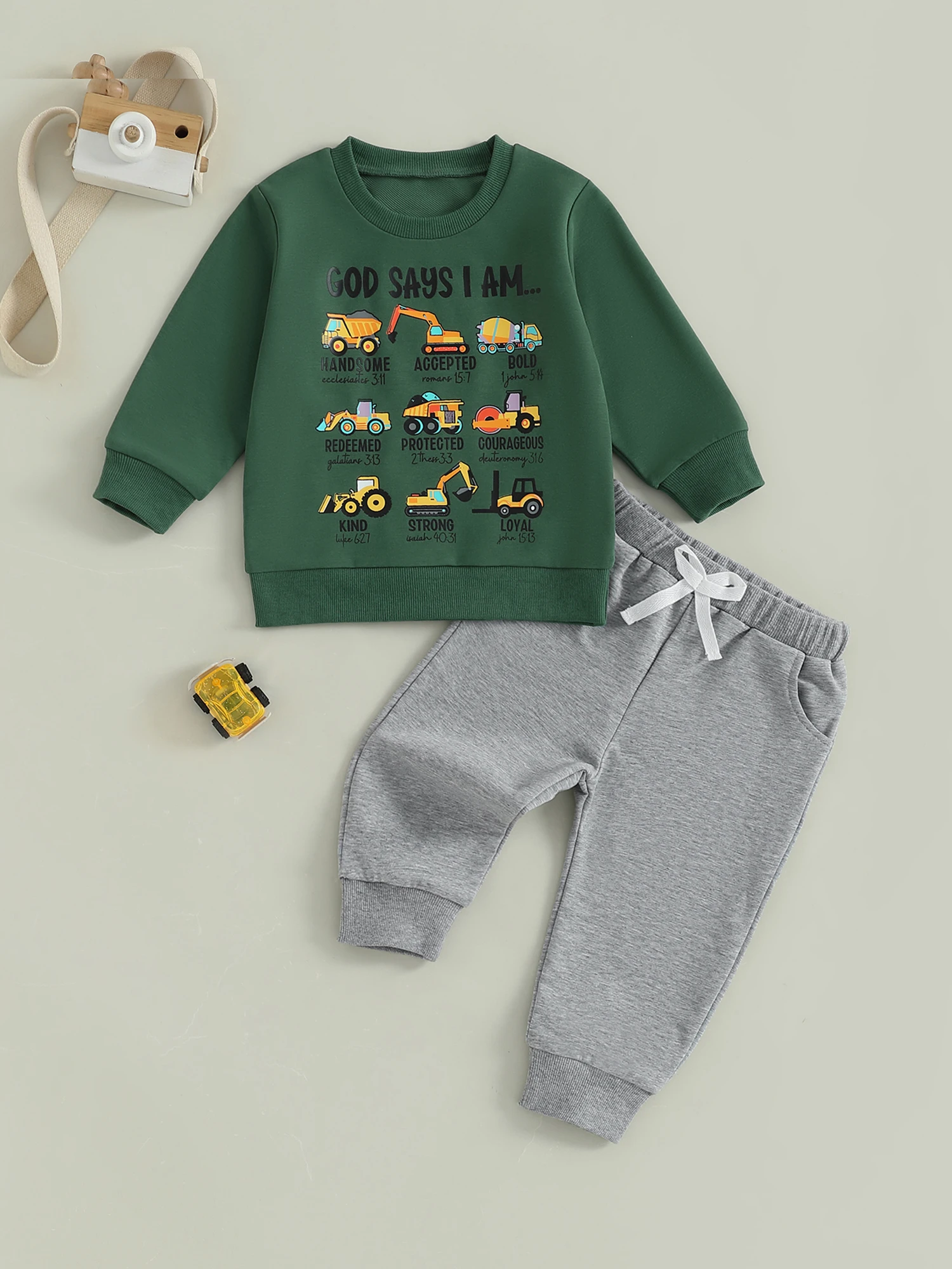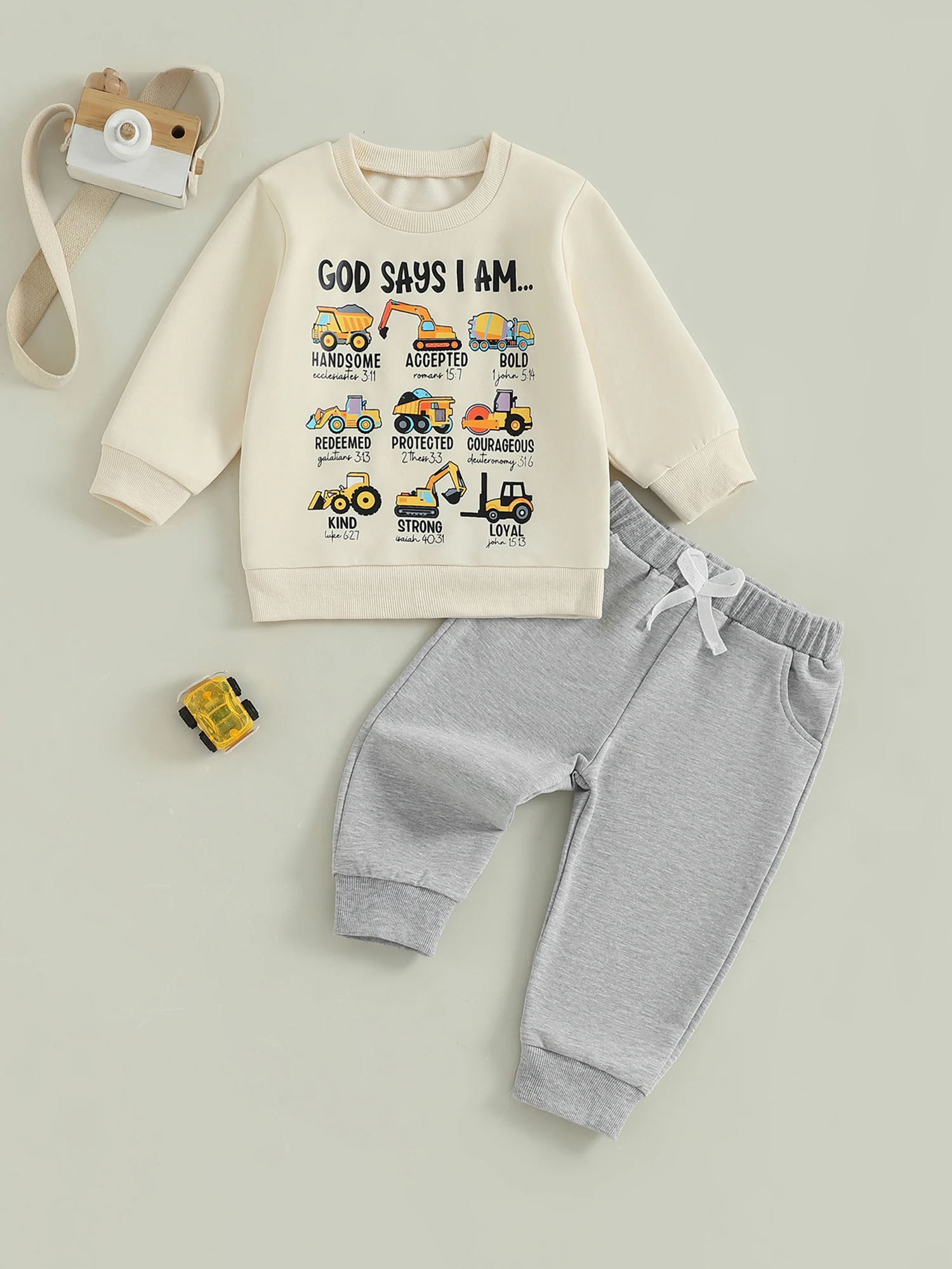 Toddler Baby Boy Fall Outfit Tool Cars Print Crew Neck Long Sleeve Sweatshirt and Pants 2 Pcs Set