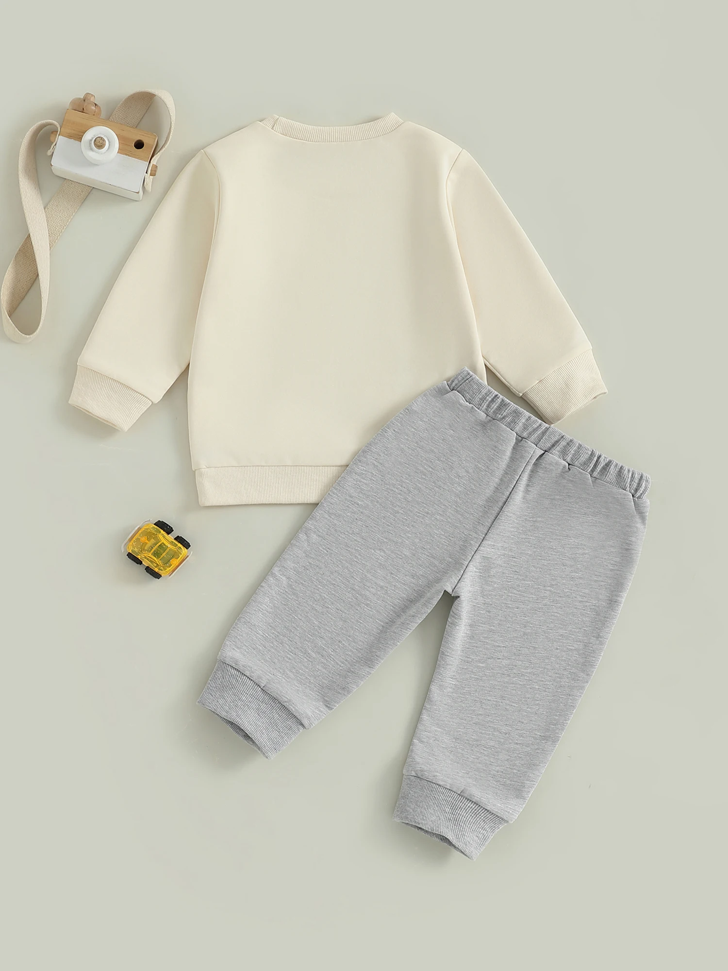 Infant Boy Autumn Clothing Set with Cute Car Patterned Crew Neck Sweatshirt and Matching Pants 2 Piece Outfit