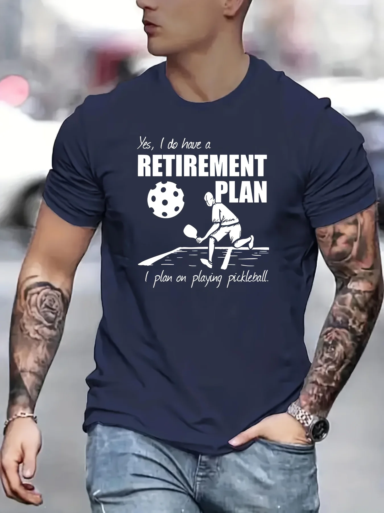 Men's Casual Crew Neck T Shirt with Retirement Plan Playing Pickleball Graphic 100 Polyester Geometric Pattern