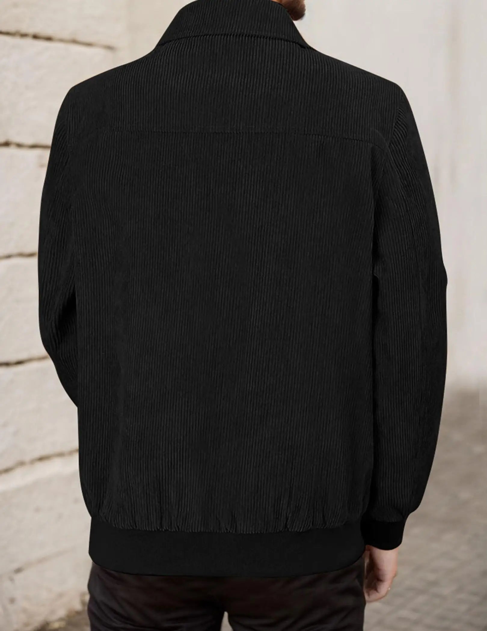 Mens Corduroy Trucker Jacket Long Sleeve Zip Up Lapel Collar Casual Fall Winter Shacket Coat With Pocket
