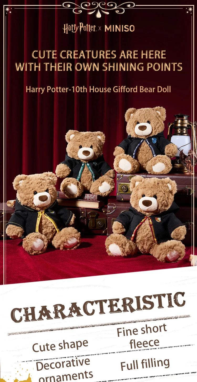 MINISO Harry Potter Series Plush Doll -10 Academy Gifford Bear Doll (Gryffindor) Cute Cloak Bear Soothing Collectible Dolls