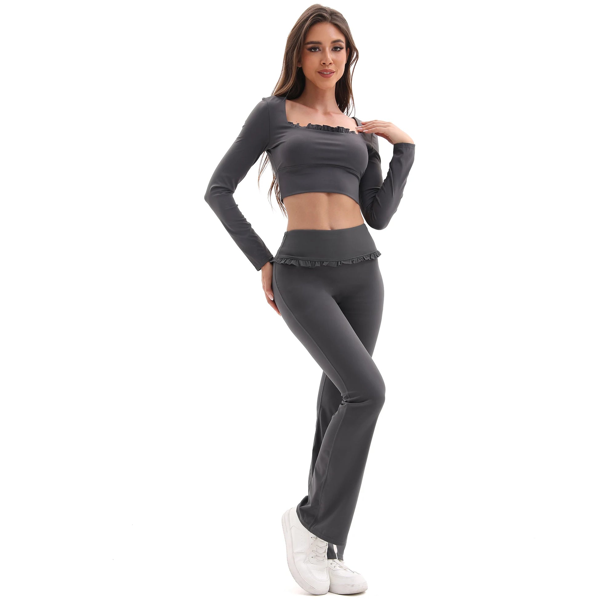 New Arrival Women's Floral Lace Set High Waist Flare Pants U-Neck Top 4-Way Stretch Yoga Outfit for Fitness Commuting All-Day