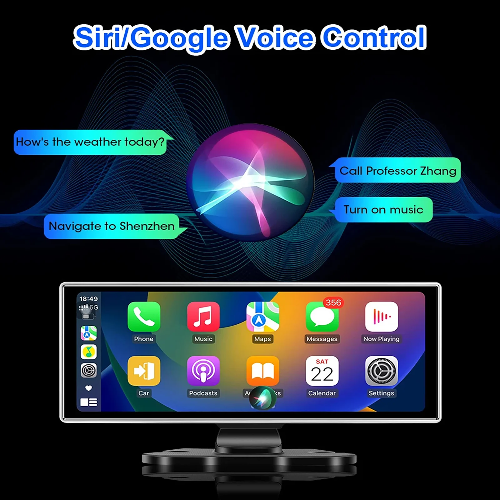【Universal Compatibility】 Our CarPlay Screen is compatible with all vehicles. With this device, you can enjoy features like YouTube, podcasts, messages, Google Maps, navigation, Spotify, Apple Music, and Bluetooth calling, making it the ultimate hands-free device. It fits seamlessly into cars, SUVs, trucks, RVs, vans, and buses, working harmoniously with your car's existing radio system.