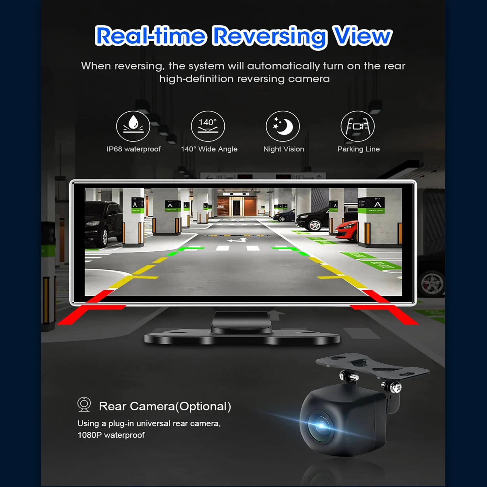 Pionray 10.26 inch Portable 4K Car DVR Wireless Carplay & Android Auto GPS Navigation Video Recorder Dashboard Dual Lens Wifi FM