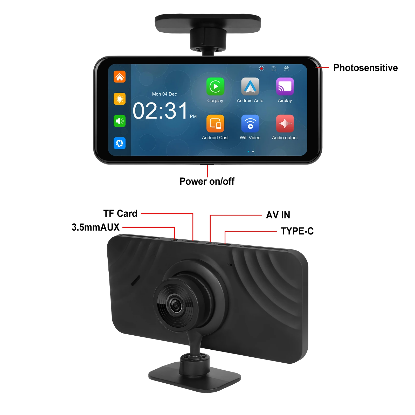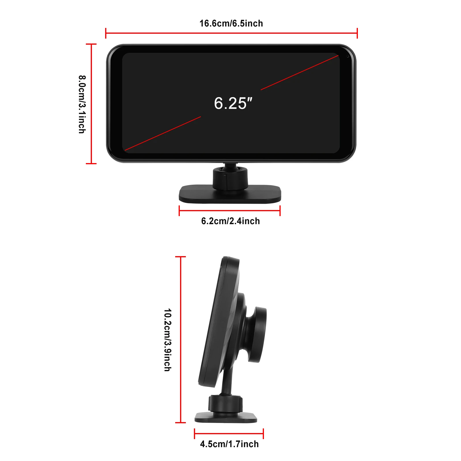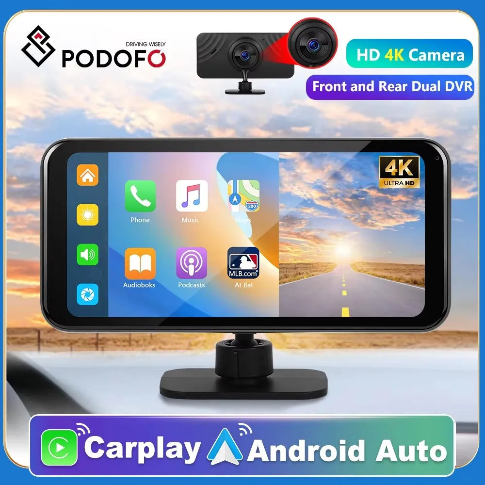 Podofo 6.25 inch Wireless CarPlay Android Auto Support Rear Camera GPS Navigation Dashboard DVR 4K Bluetooth FM AUX