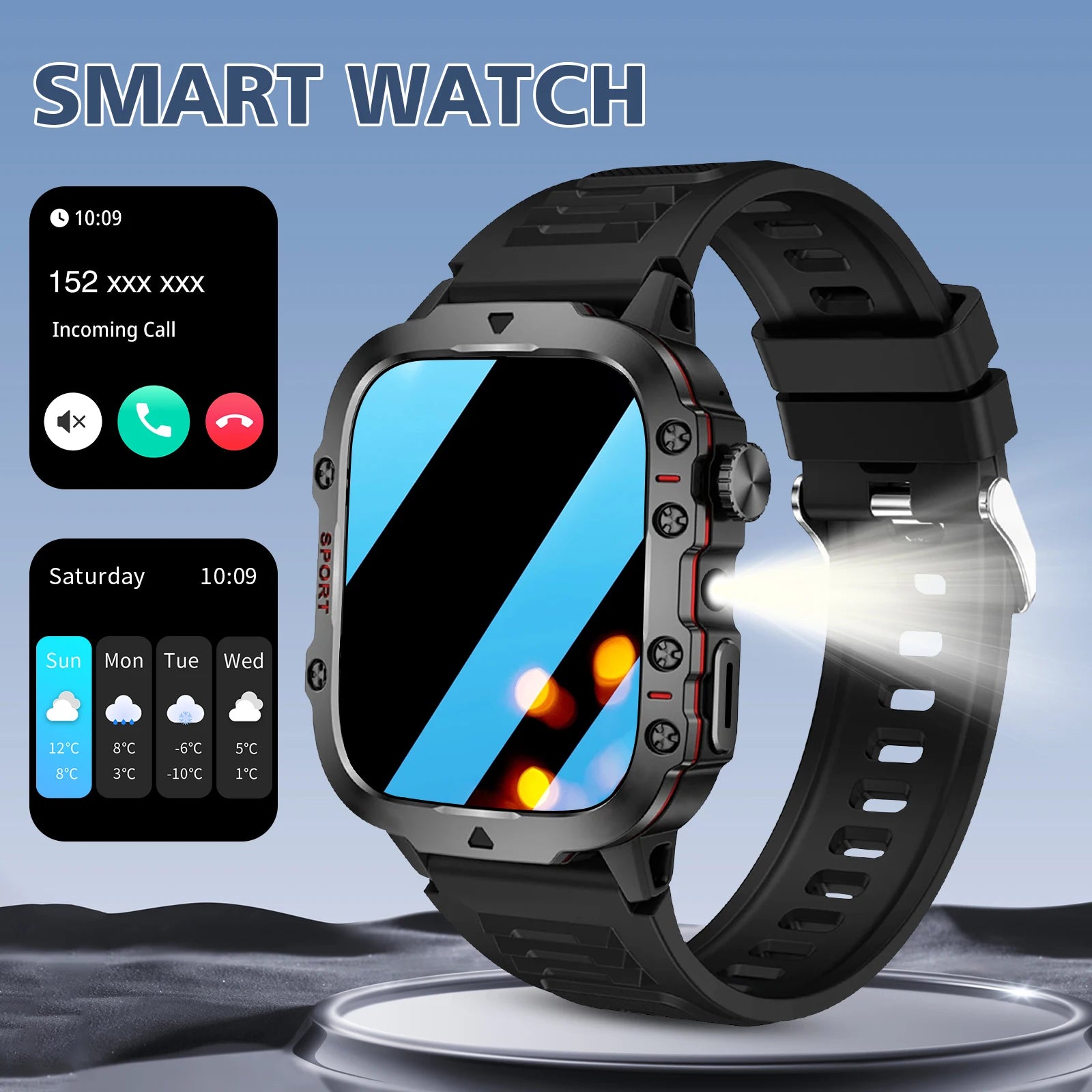 Smart watch, Bluetooth call, message reminder, two straps optional, suitable for iPhone/Android phone