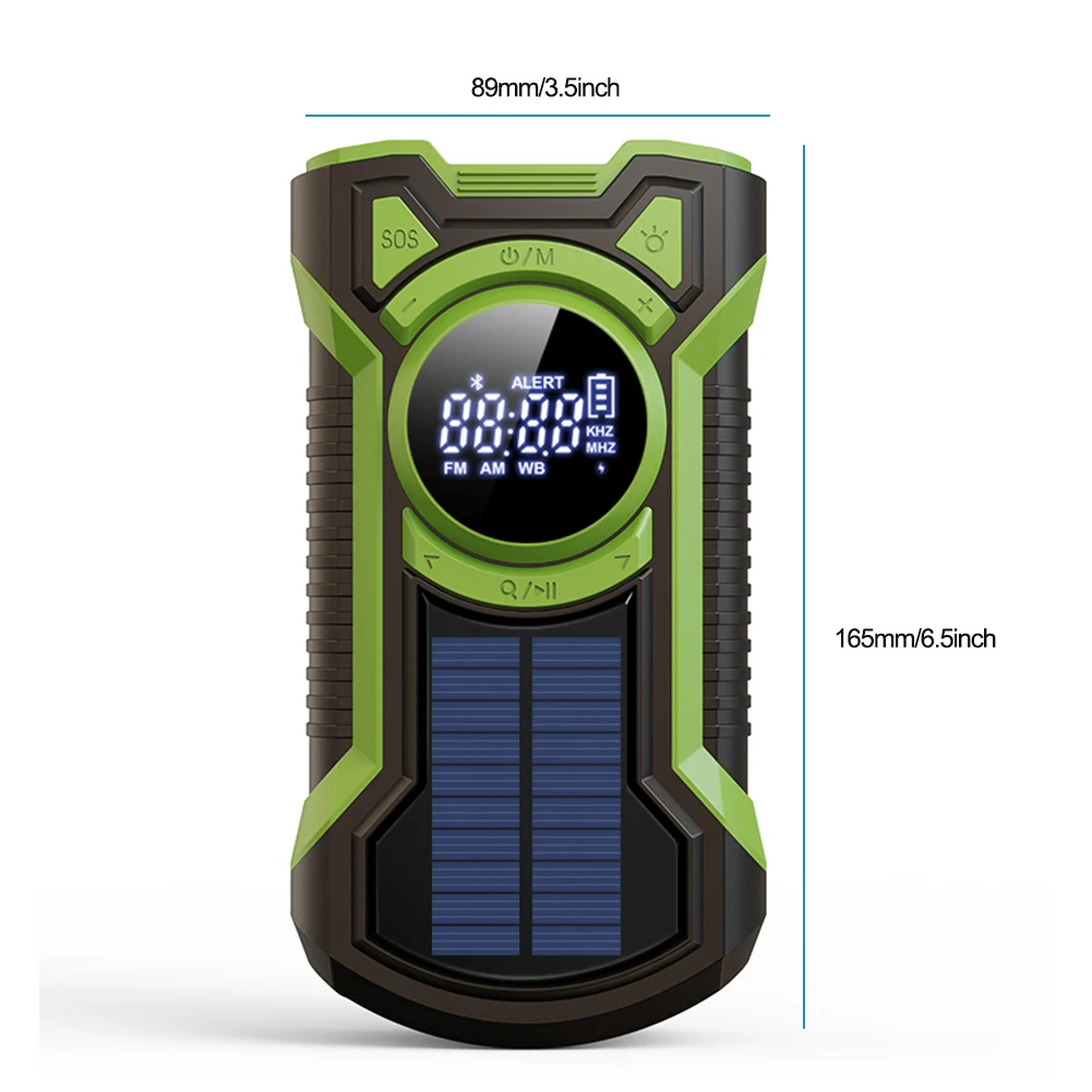 Solar AM/FM/NOAA Weather Radio Waterproof Hand Crank 5000mAh Bluetooth-Compatible5.3 Phone Charger SOS Alarm for Outdoor Camping
