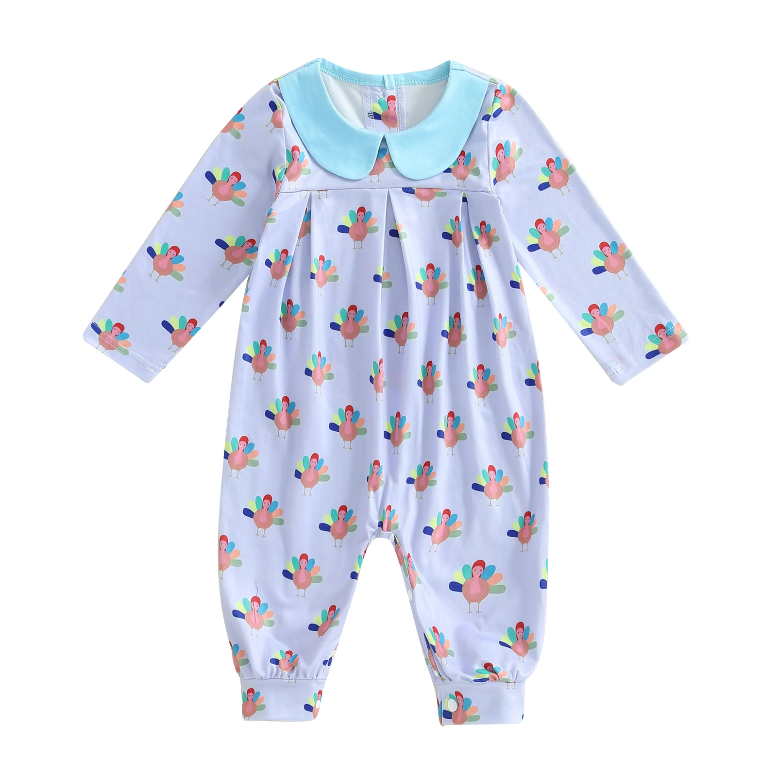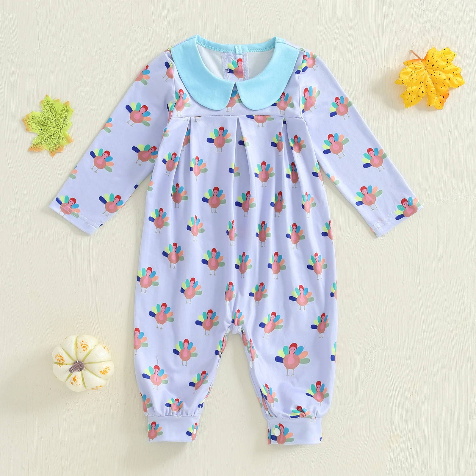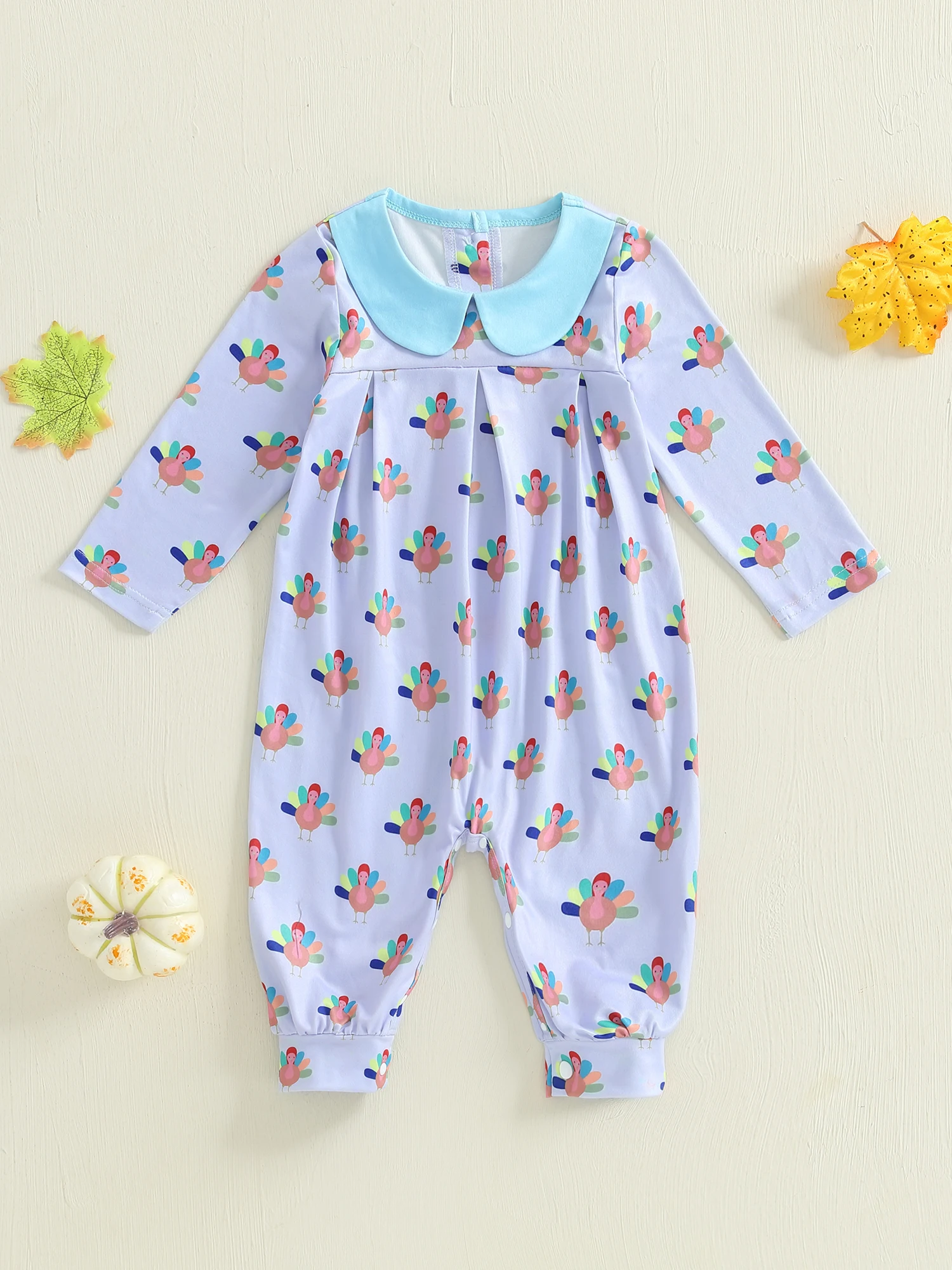 Baby Girl Thanksgiving Jumpsuit Long Sleeve Doll Collar Turkey Print Romper