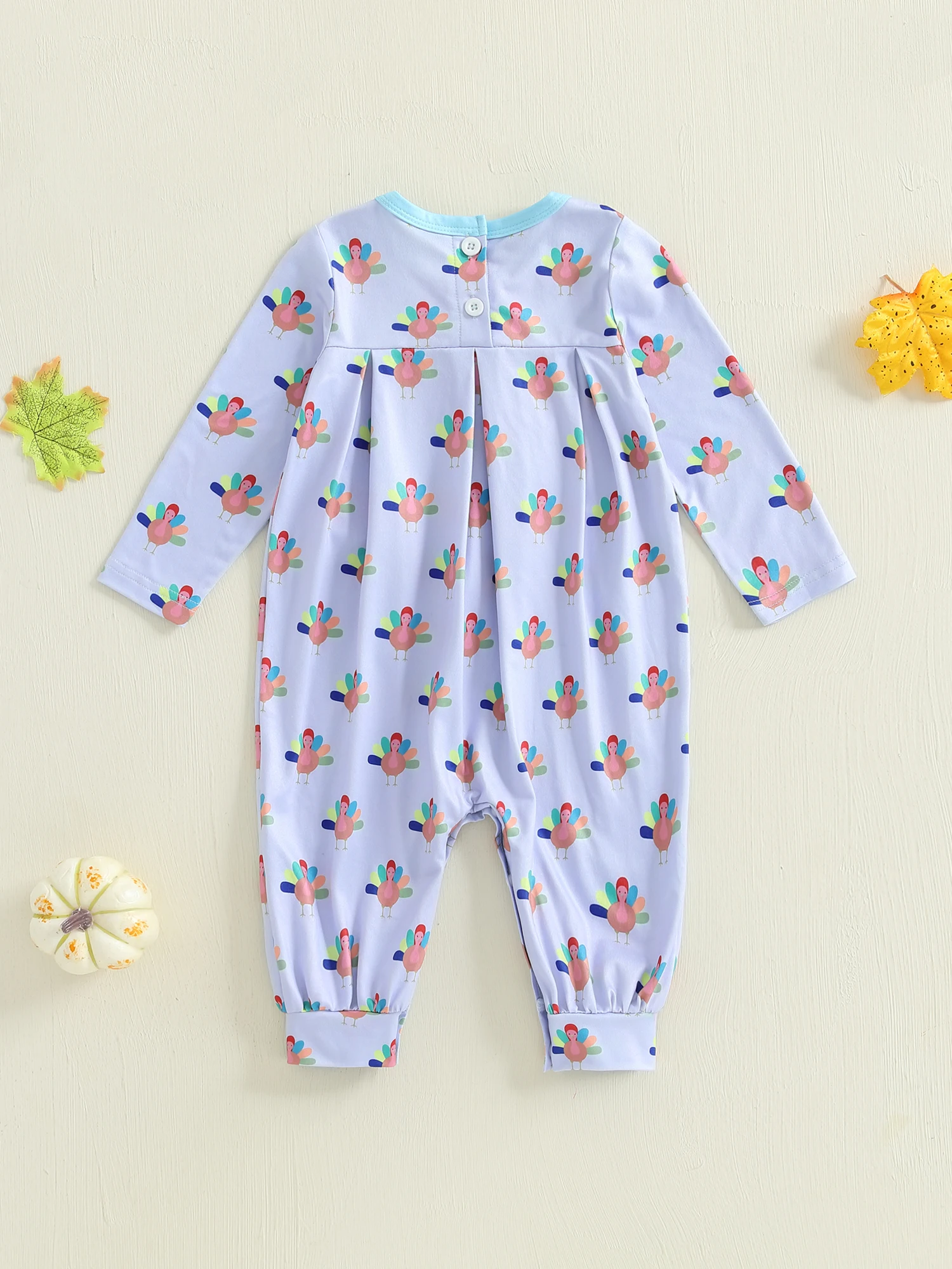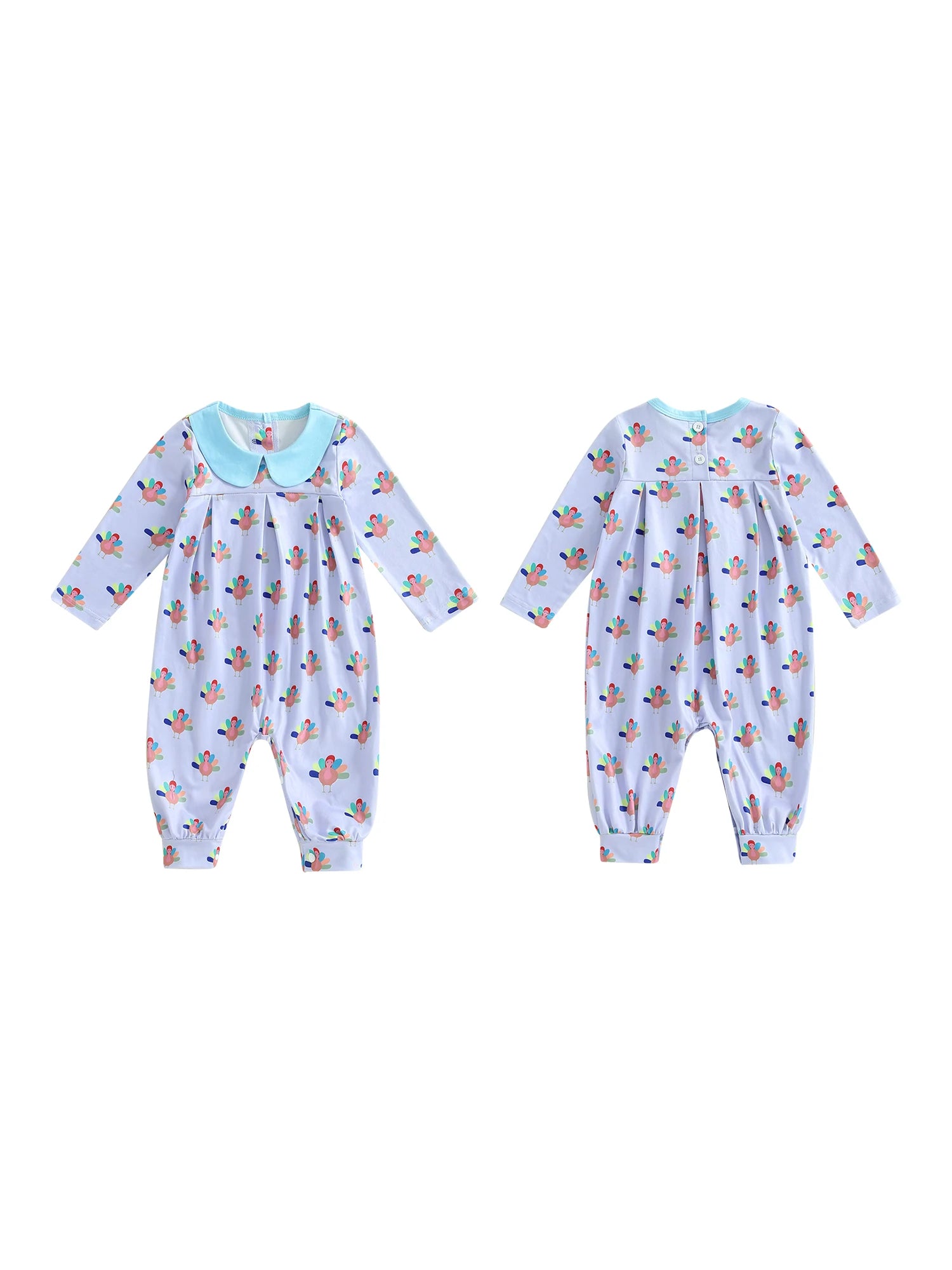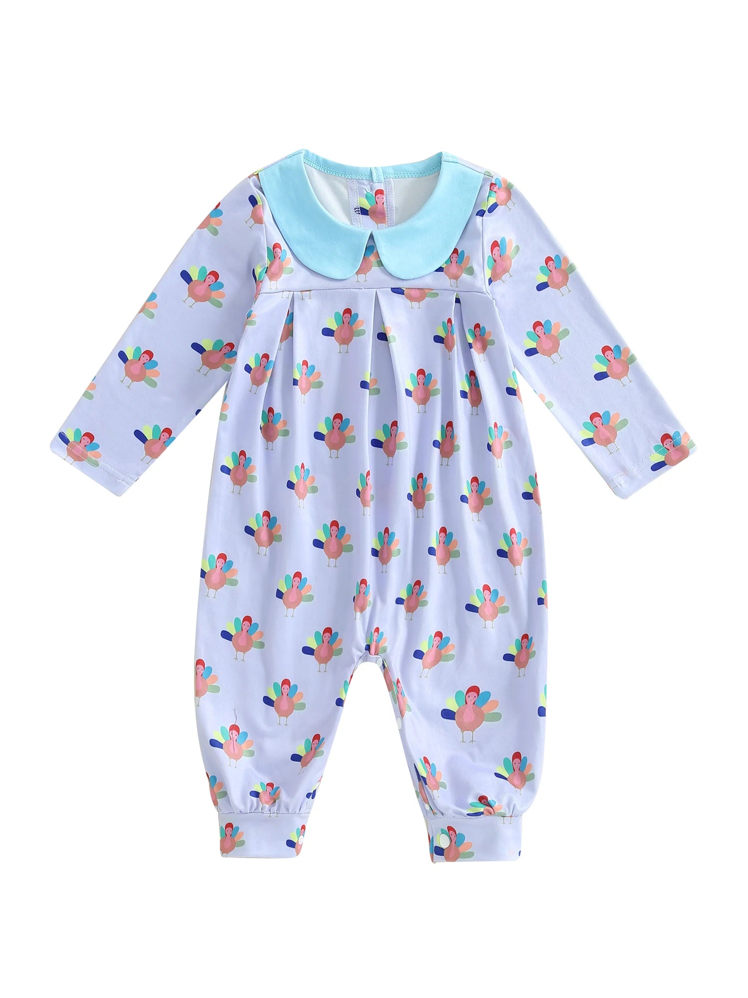 Baby Girl Thanksgiving Jumpsuit Long Sleeve Doll Collar Turkey Print Romper