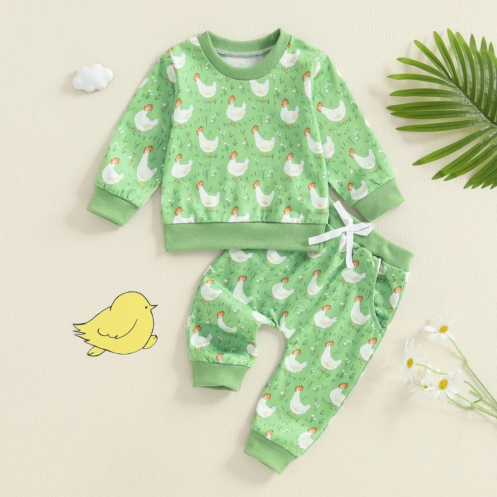 Baby 2Pcs Fall Outfits Long Sleeve Farm Chicken Print Sweatshirt + Pants Set Infant Clothes