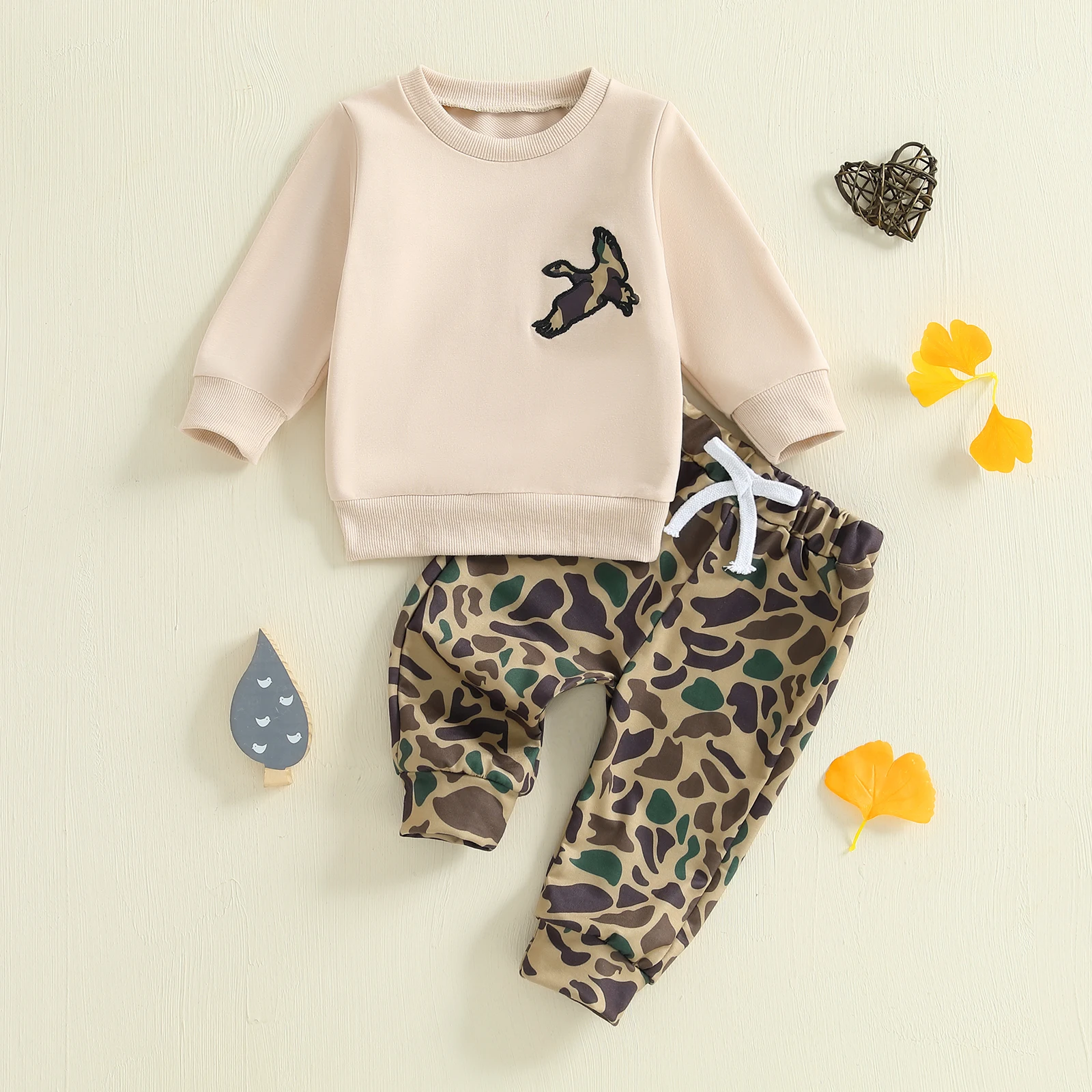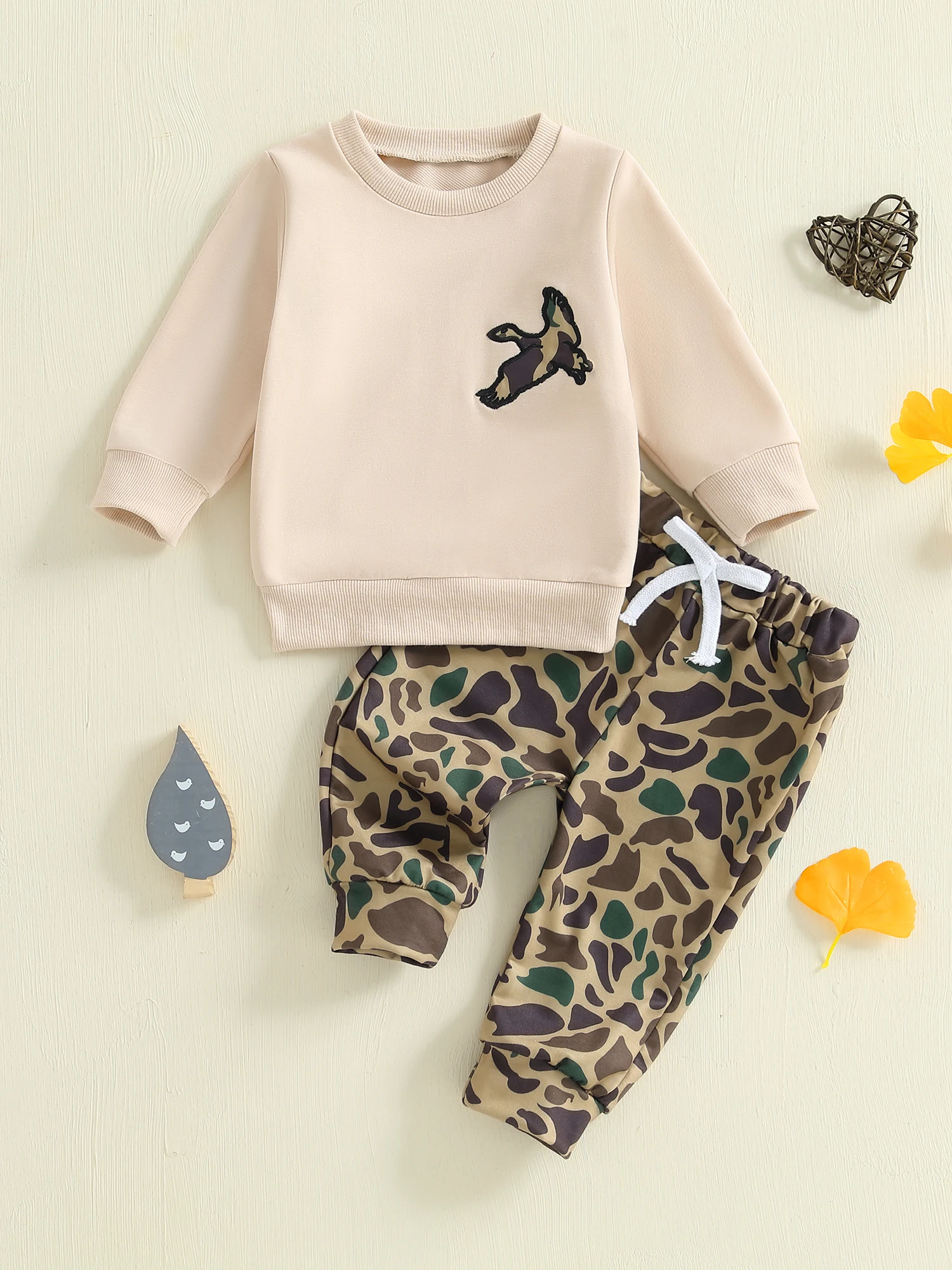 Baby Boy 2Pcs Fall Outfit Long Sleeve Wild Goose Embroidery Sweatshirt + Pants Set Warm Clothes