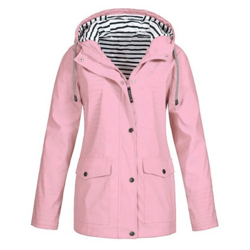 Waterproof Sunscreen Outdoor Sportswear Women'S Jacket Jacket Casual Hooded Long-Sleeved Loose Jacket Striped Plus Size Assault