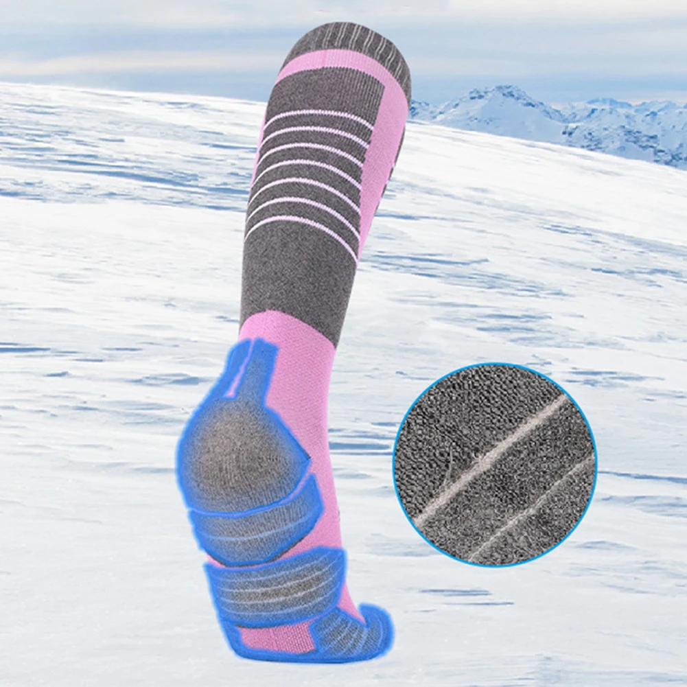 1 Pair Winter Thermal Ski Socks Sweat-Absorbing Hiking Socks High Tube Stockings for Women Outdoor Skiing Cycling Running Hiking