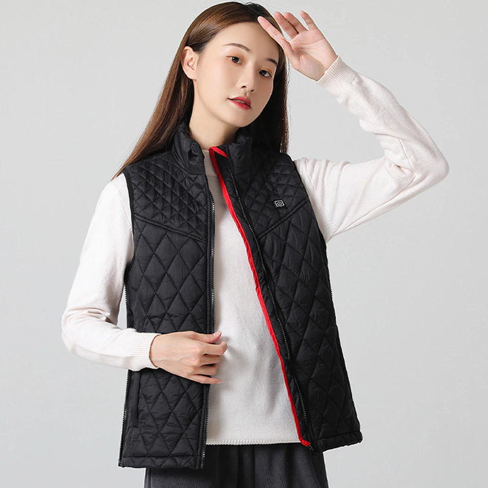 Women Electric Heating Vest Rechargable Electric Thermal Jacket 3 Heating Levels 9 Zone Heating Autumn Winter Outdoor Wear
