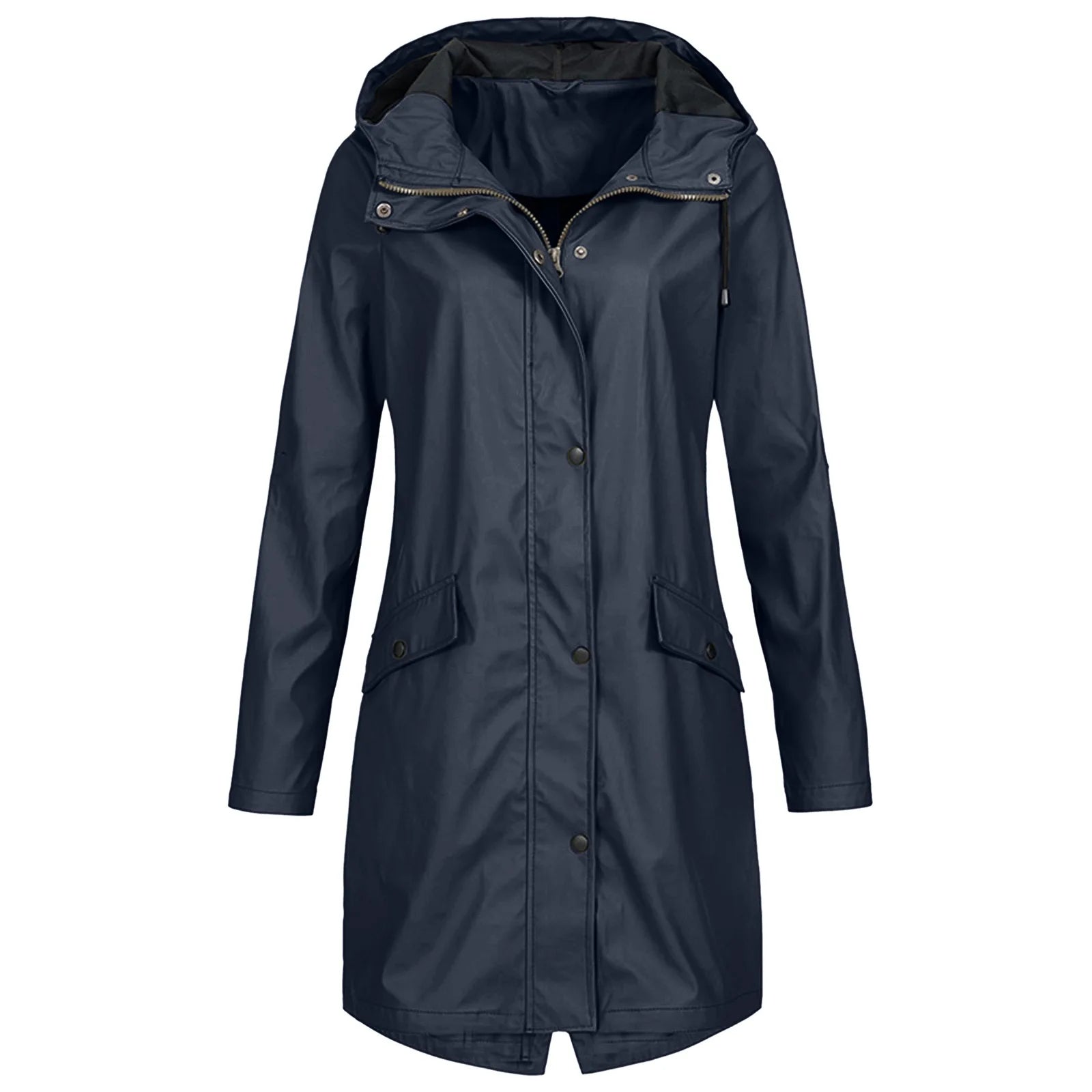 Women Waterproof Zipper Rain Jacket Solid Color Ladies Outdoor Mountaineering Lightweight Raincoats Plus Size XS-3XL