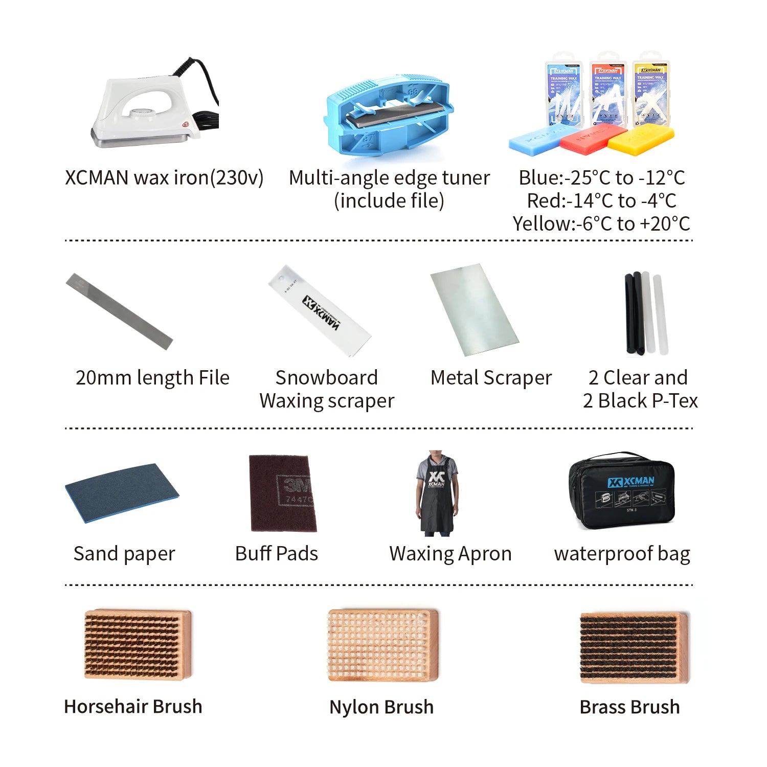 XCMAN Complete Ski Snowboard Tuning and Waxing Kit with Waxing Iron,Universal Wax,Edge Tuner,Brush,Wax Scraper,Ptex