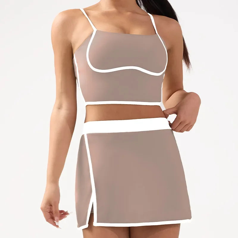 Yoga Jumpsuit Women with Contrasting Colors Chest Cushion for Anti Glare Leggings for Sports and Fitness Training Tennis Skirt